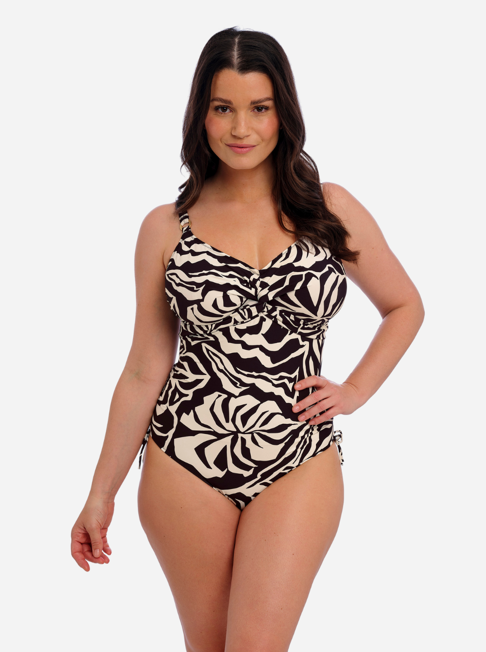 Fantasie's 'Aruba Nights' swimsuit is both flattering and sophisticated. Constructed with a twist that gathers across the bust, it's cut from sculpting stretch jersey to a V-neck silhouette with adjustable shoulder straps and built-in cups that are underwired for extra support.
