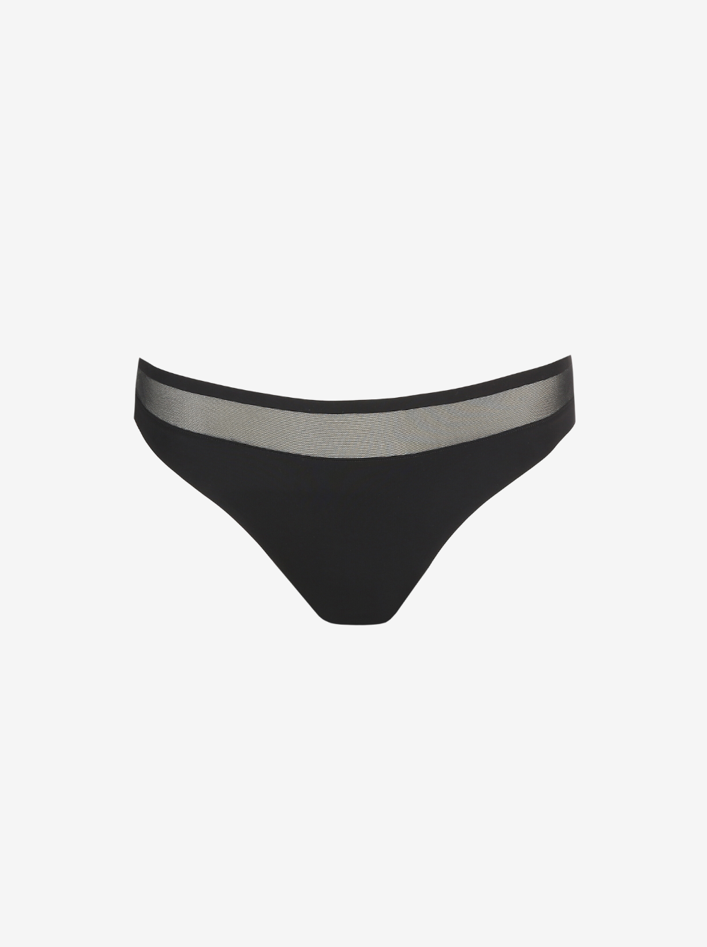 Marie Jo's new 'Louie' collection prioritises comfort. This black thong is made from buttery-soft microfibre accented with panels of sheer mesh. It has a mid-rise waist and offers minimal coverage across the back for an invisible finish.