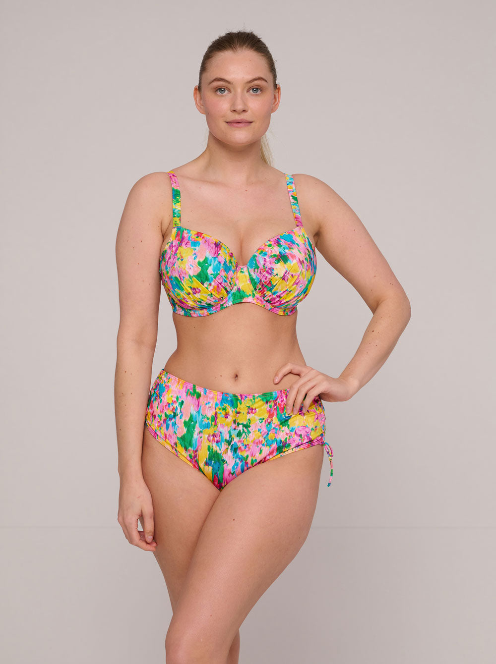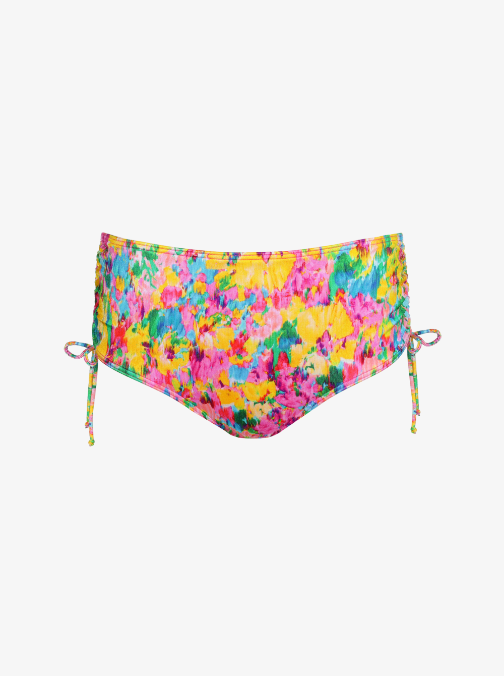 Prima Donna's 'Ubud' bikini briefs are designed with ruched panels along the sides with ties to adjust the leg height. Cut from sculpting stretch fabric printed with painterly blooms, they sit flatteringly high on the waist and offer full coverage across the back.