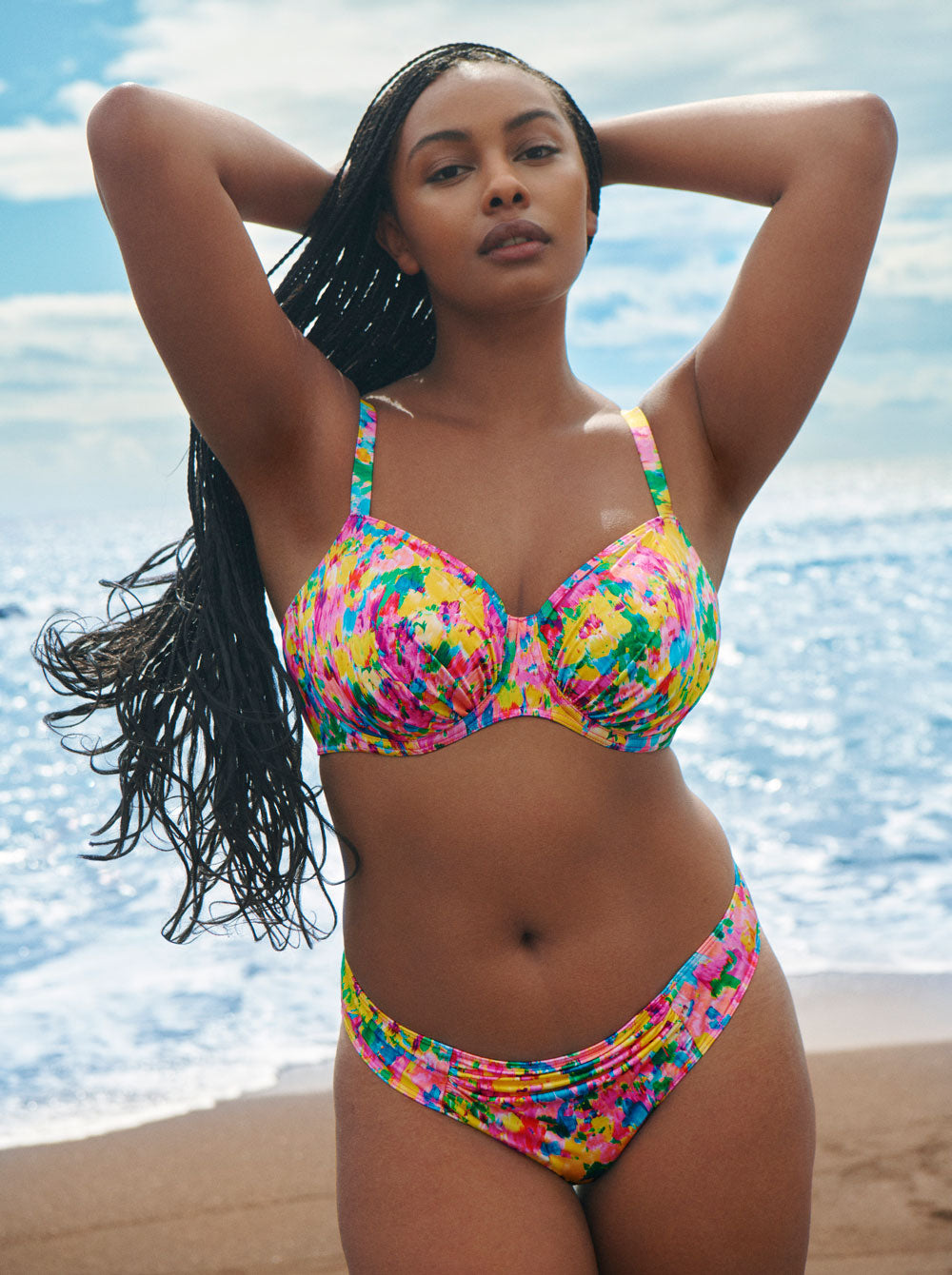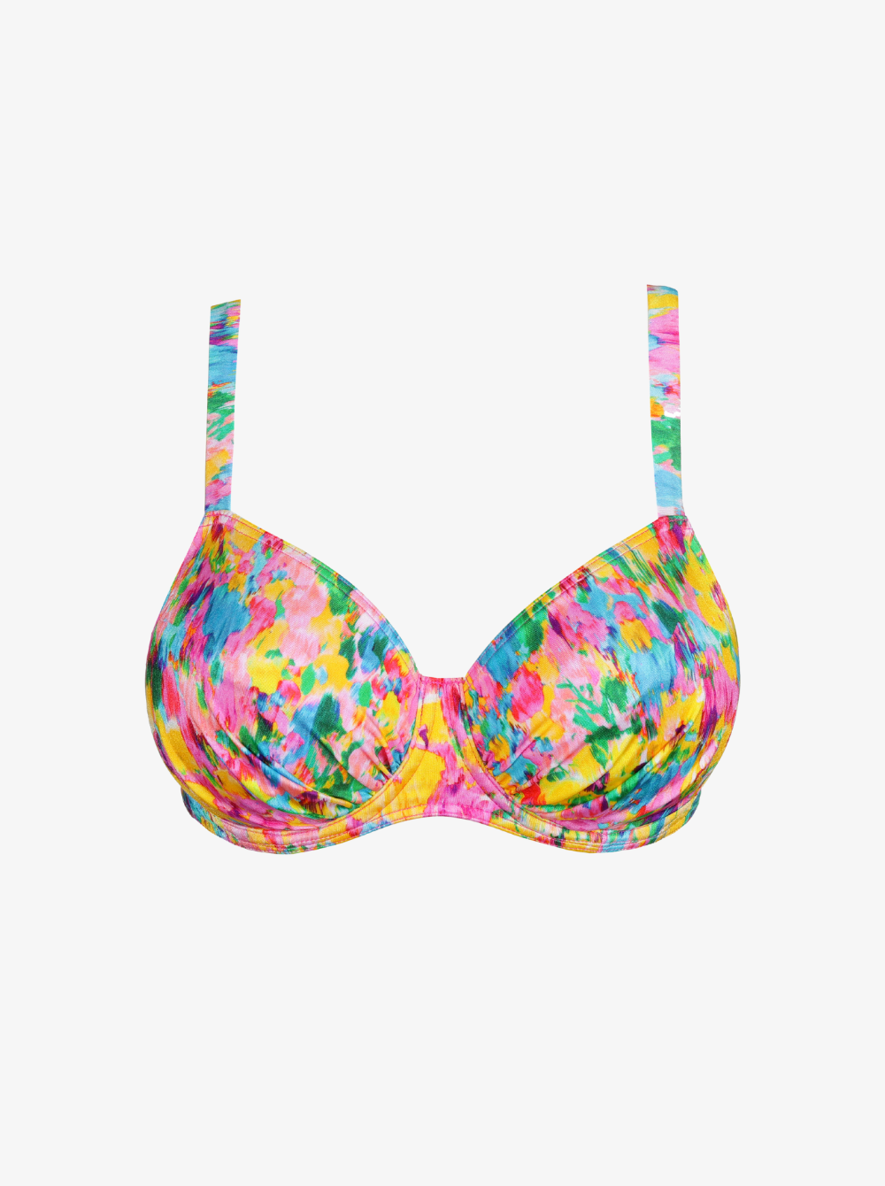 Prima Donna's colour-infused 'Ubud' bikini top is printed painterly florals. It has adjustable straps and underwired cups with hidden four-part construction offering comfortable support whether you're swimming or lounging poolside. Wear it with the coordinating briefs in our edit.