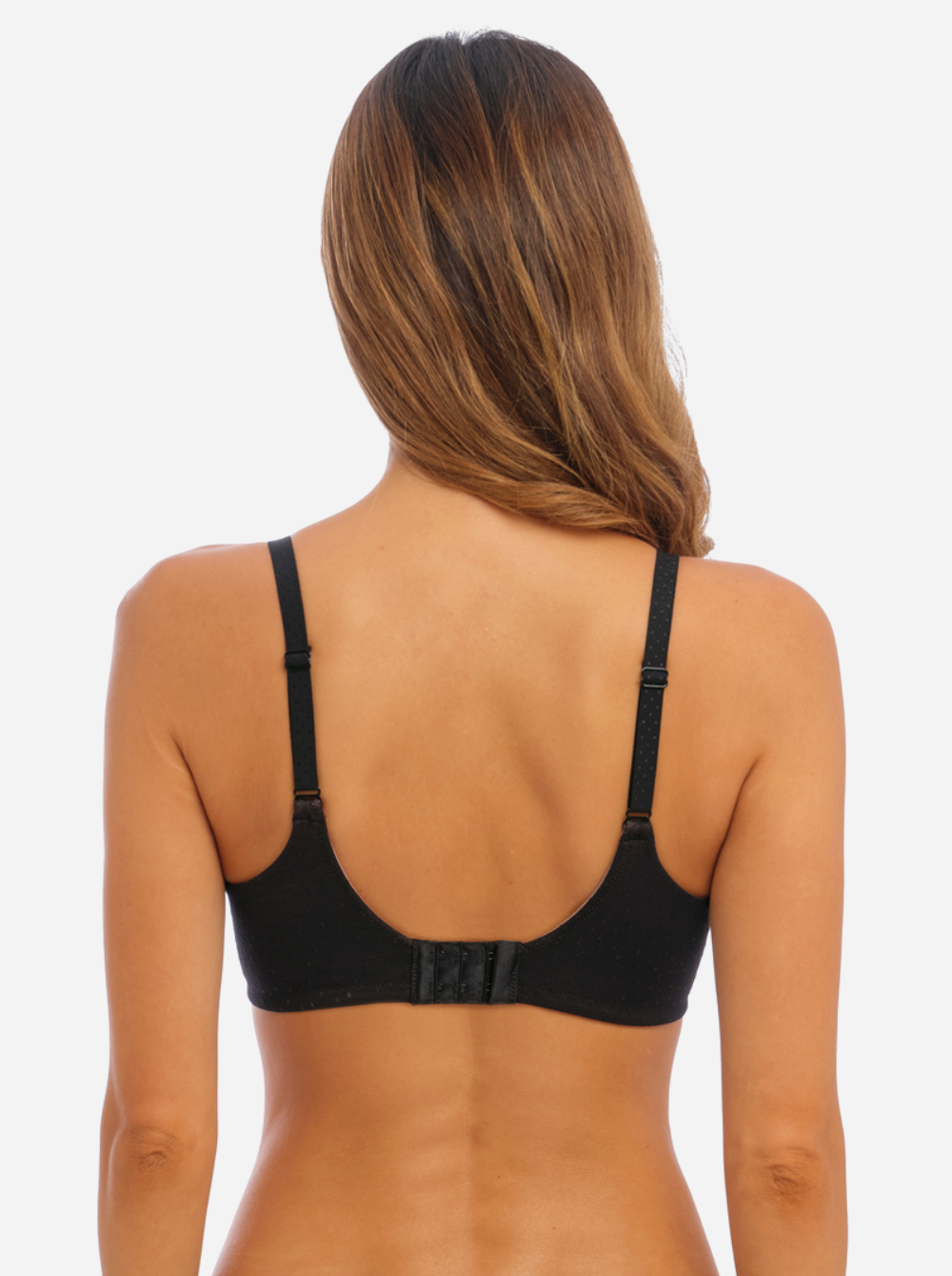 Wacoal's bestselling 'Back Appeal' bra is designed with an ultra-thin spacer lined band for a smoothing effect. Made from silken microfibre with a pretty dot pattern, it has underwired cups and adjustable shoulder straps and is lined on the band in ultra-thin spacer fabric for a smoothing effect.