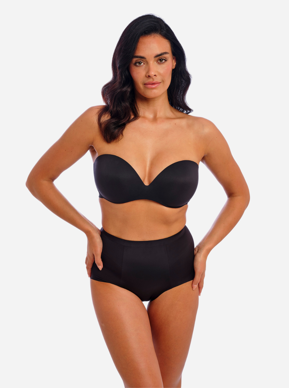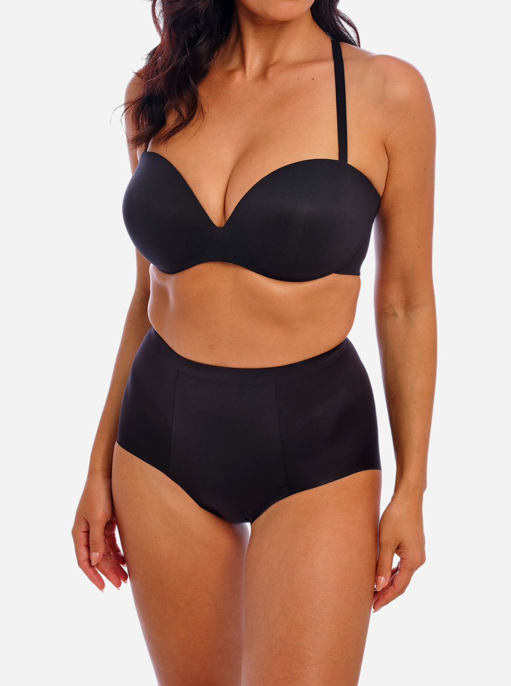 Wacoal's new 'Ines Secret' bra is designed to give a seamless, undetectable finish, even under tight-fitting clothing. Made from stretch jersey, it has contoured cups with push-up padding and a plunge neckline. The detachable straps can be worn over the shoulders or crossed at the back.