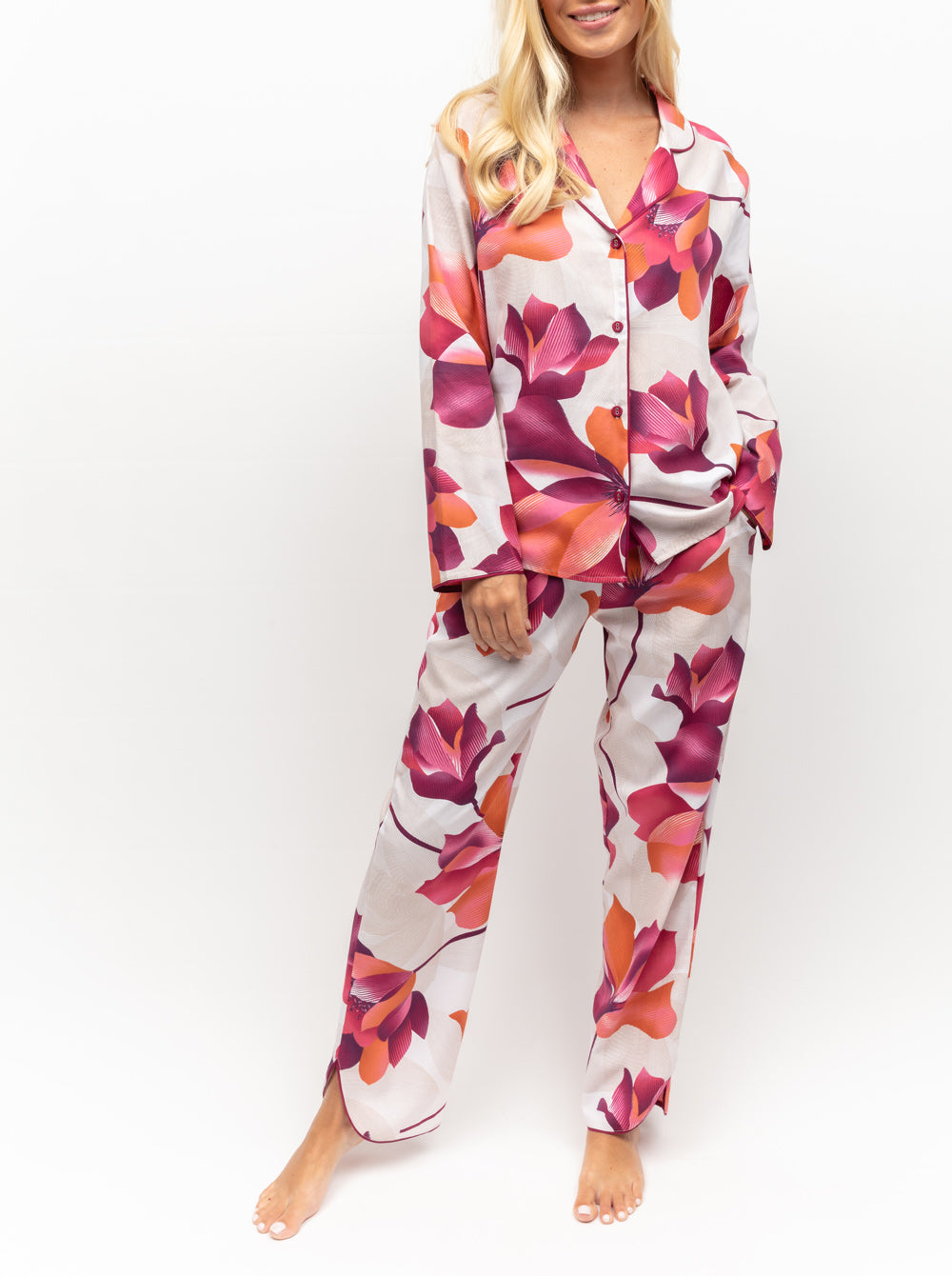 Designed to be worn with the matching bottoms, this 'Aliyah' pyjama top by Cyberjammies is printed with bold florals. It's made from soft modal-cotton to a relaxed silhouette with button front fastening and traditional piping.