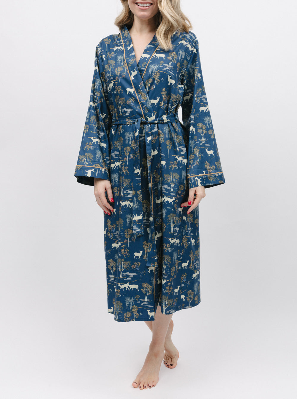 This blue 'Fawn' robe by Cyberjammies is made from the softest cotton-modal and features an enchanting woodland print that feels so festive. It's perfect for slipping on over the brand's matching pyjamas.