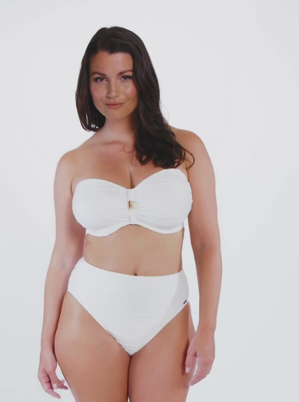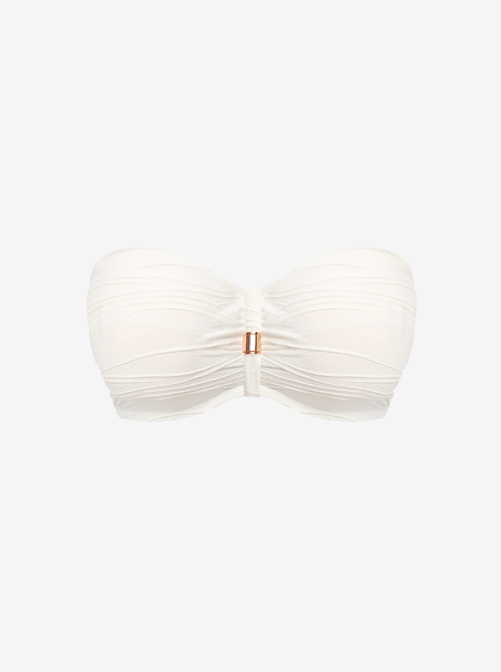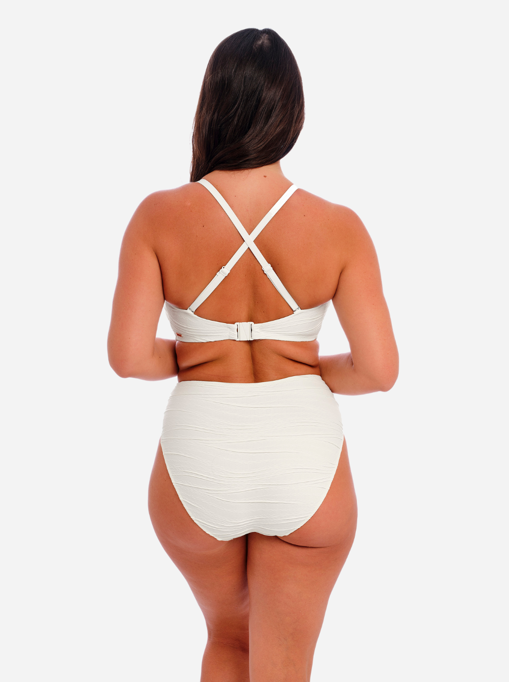 Fantasie's bestselling 'Beach Waves' bikini top is reinvented in a fresh white that beautifully complements sun-kissed skin. Designed with flattering ruching, it has a bandeau shape and concealed underwiring for exceptional support up to a cup size H. Wear with the coordinating bikini briefs as an elegant set.